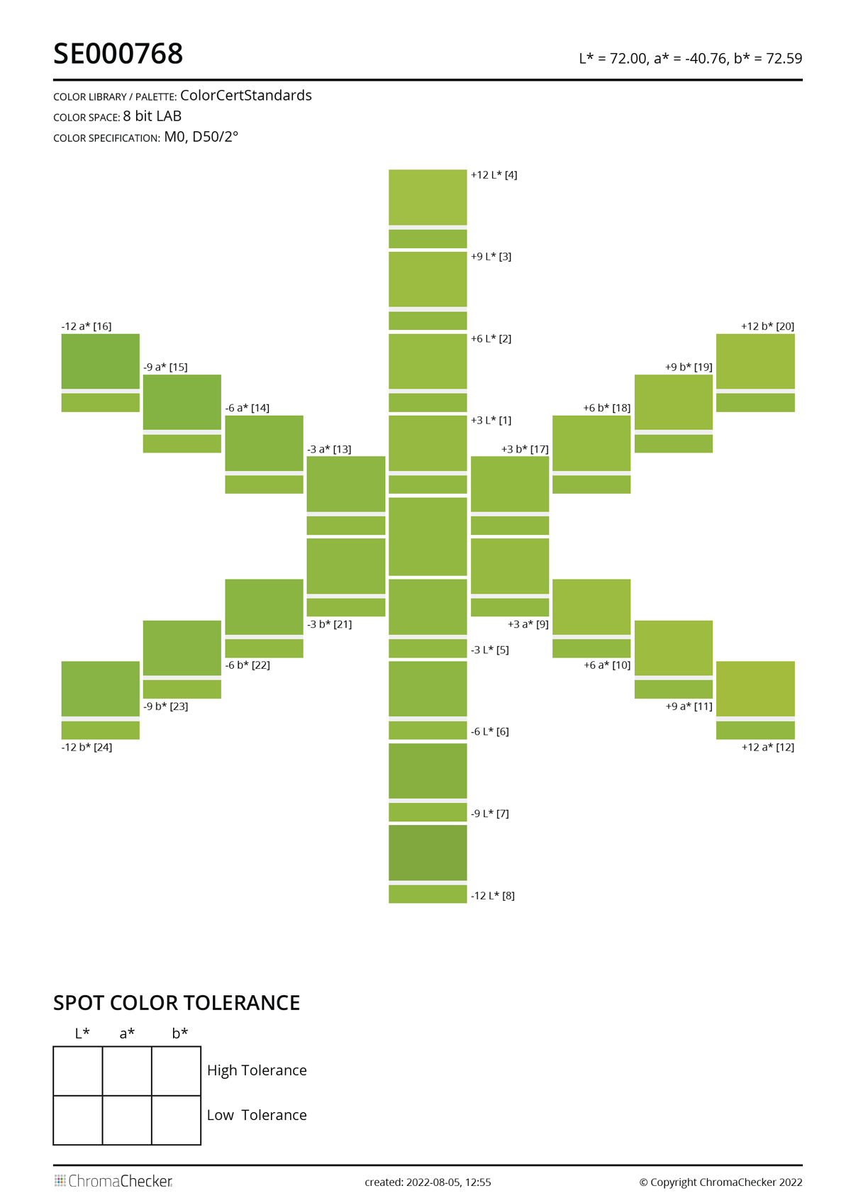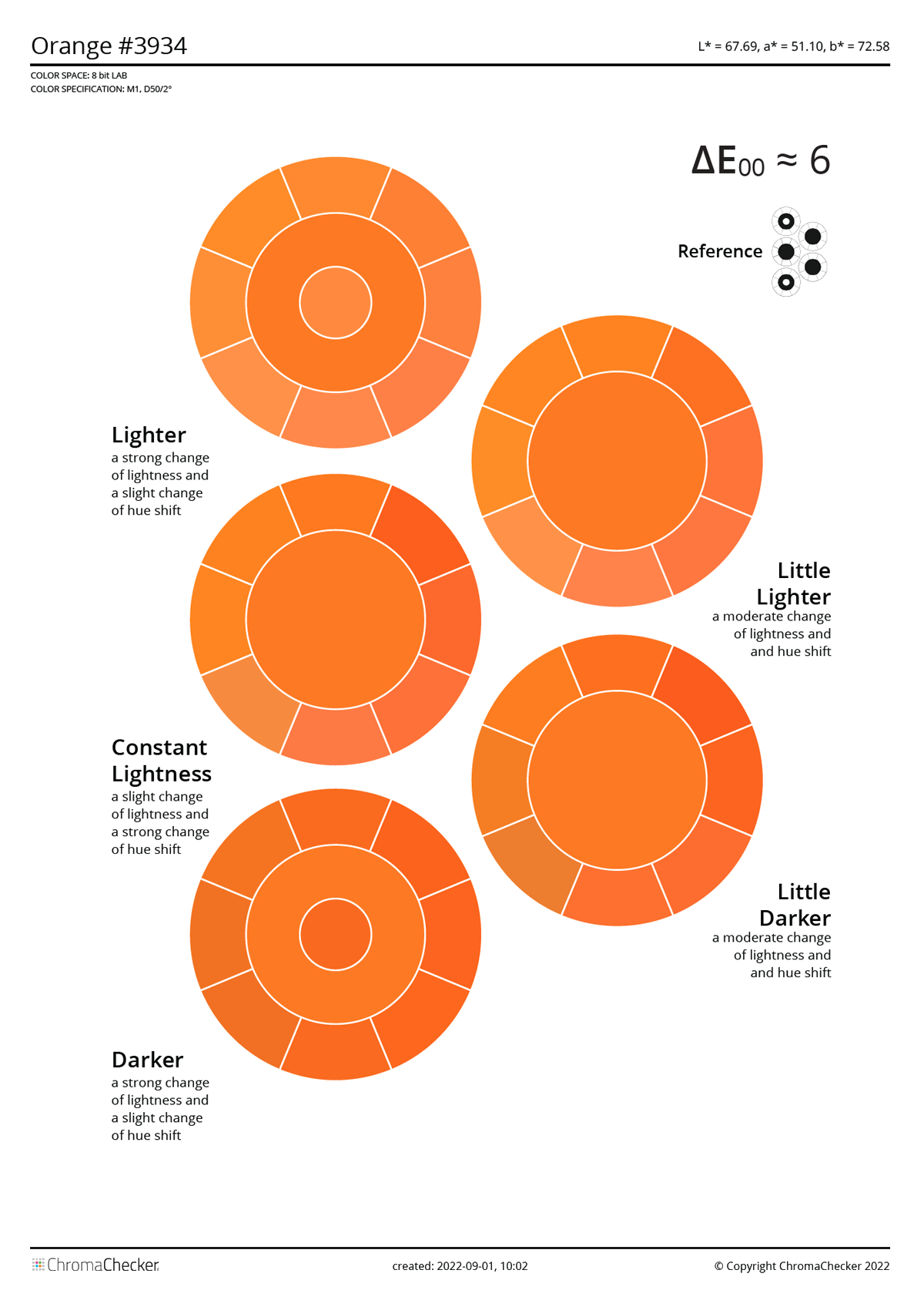 2. Quickly assess uniformity across the printed page, or between printing pages3. Snowflake Tolerancing (multi-axis tolerancing)ChromaChecker's Spot Color Variator shows how the same ∆E renders noticeable color differences which do not co-related to customer's expectations. Snowflake tolerance eliminates the noticeable color differences at the same ∆E to provide a uniform visual tolerance result.4. Different dashboard designs depending upon the users skill and knowledge level (coming soon)5. Accommodate different lighting conditions for match purposes (coming soon) |