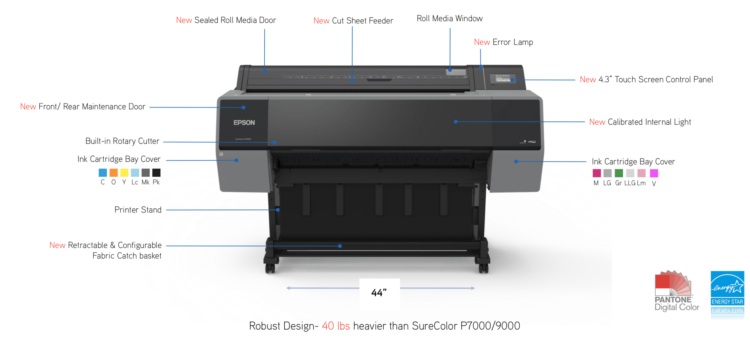 Introducing the all-new SureColor P7570, the next generation of wide-format printing—only from Epson. From professional photography to proofing and graphic design, the SureColor P7570 was built from the ground-up to uniquely cater to the full spectrum of creative needs. Featuring all-new UltraChrome® PRO12 Ink, the SureColor P7570 captures every detail with unparalleled color brilliance2 and accuracy. And, with a new 2.6" PrecisionCore® printhead, you get unmatched image quality at speeds up to 2.4 times faster than our previous generation1. Welcome to the future of professional imaging.