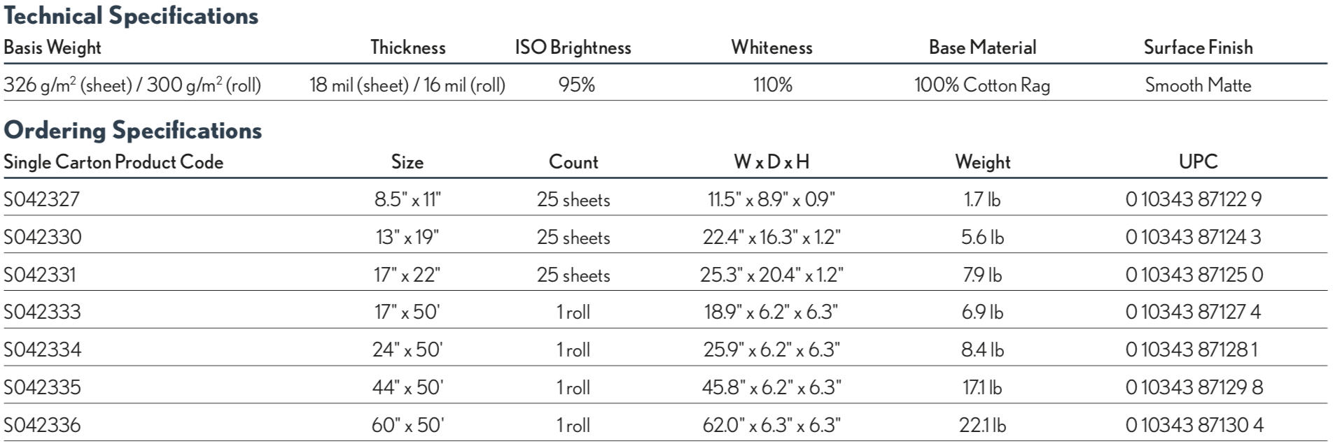 EPSON Signature Worthy Hot Press Bright - Professional photographers and artists require papers that are archival and have clean highlights and rich blacks that meet their demanding requirements, without sacrificing the look and feel of a true fine art paper. Hot Press Bright is an acid-free, lignin-free, 100% cotton paper that delivers a high Dmax and beautiful tonal transitions, plus a wide color gamut. Optimized for the EPSON UltraChrome® Ink family, Hot Press Bright has an extremely smooth surface and is available in a variety of sizes.