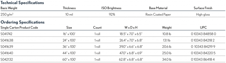 - Basis Weight: 69 lb. (260 g/m²)