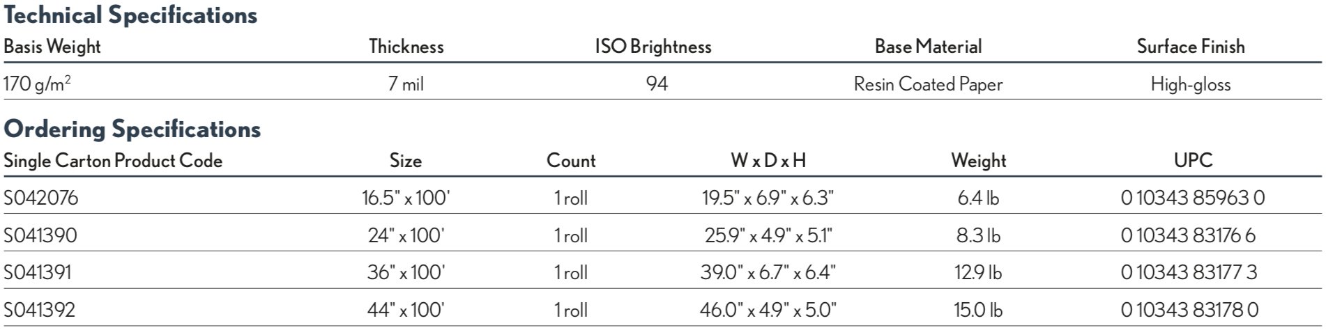 Epson Premium Glossy Photo Paper (170) is an instant-drying, high-gloss paper with a resin coated (RC) base. The RC base allows the paper to maintain vivid, lifelike colors that rival traditional prints. A favorite among photographers and graphic artists, its non-cockling characteristics make it ideal for photographs, promotional pieces, layouts, portfolio images, proofs, displays and posters. It creates high-quality prints by offering maximum ink coverage with brilliant color inks that dry in an instant. This paper can also be easily laminated to provide protection from light and moisture. Paper Specifications: